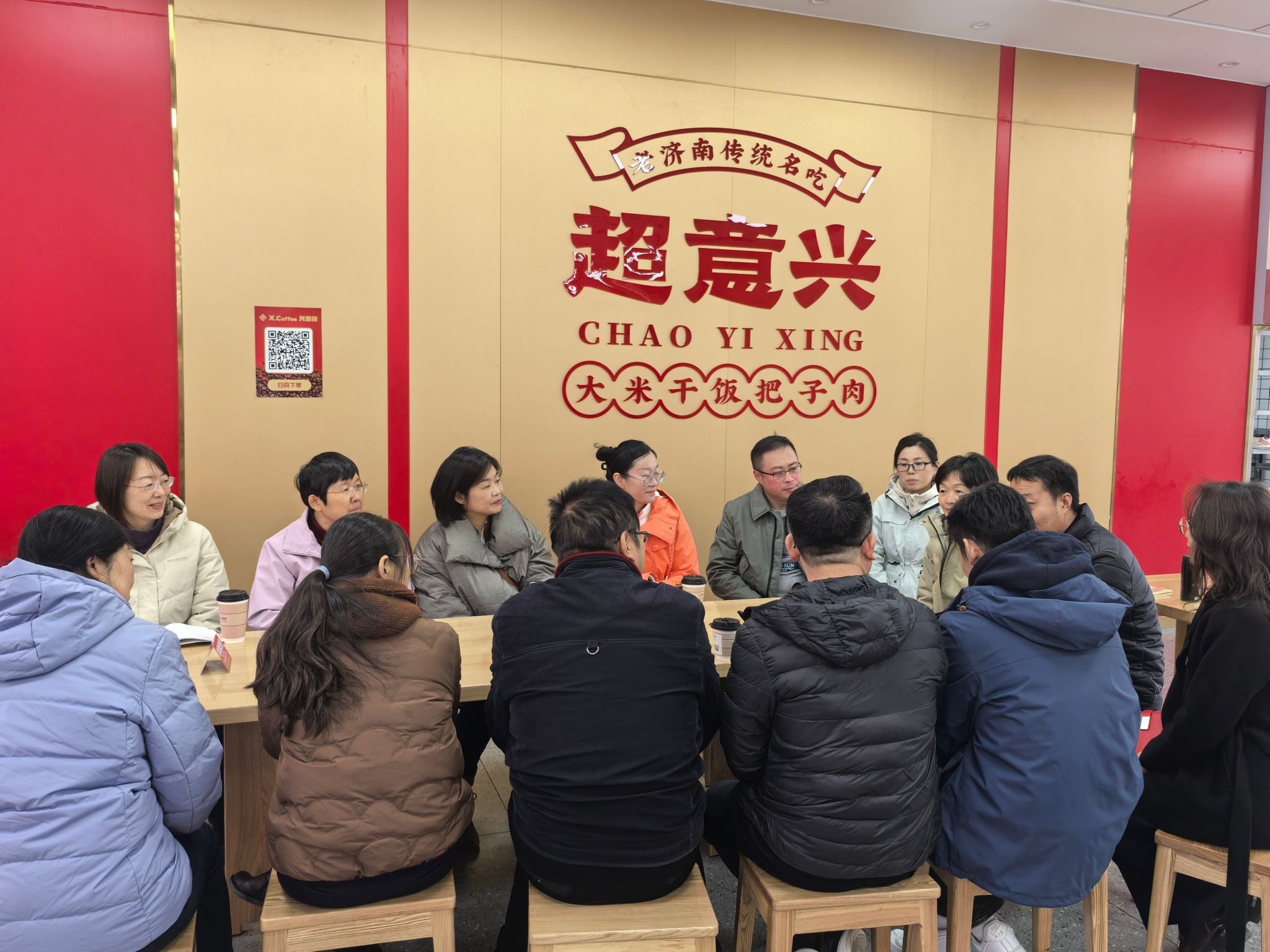 超意兴餐饮集团副总经理孙燕携相关负责人热情接待了调研团队。在孙燕副总经理的陪同下,老师们实地走访了智慧央厨的自动化生产车间、冷链配送中心及质量检测实验室,观摩了从食材甄选、标准化加工到成品封装的全流程运作。调研中,团队重点了解了超意兴百年把子肉制作工艺的工业化转型路径,急速锁鲜技术的应用以及全链条质量追溯体系的构建情况。针对生产线数字化管控、食材营养保留等关键技术环节,调研团队与企业技术骨干进行现场研讨。对以科技赋能食品安全、始终坚守惠民经营理念的做法给予了高度认可。