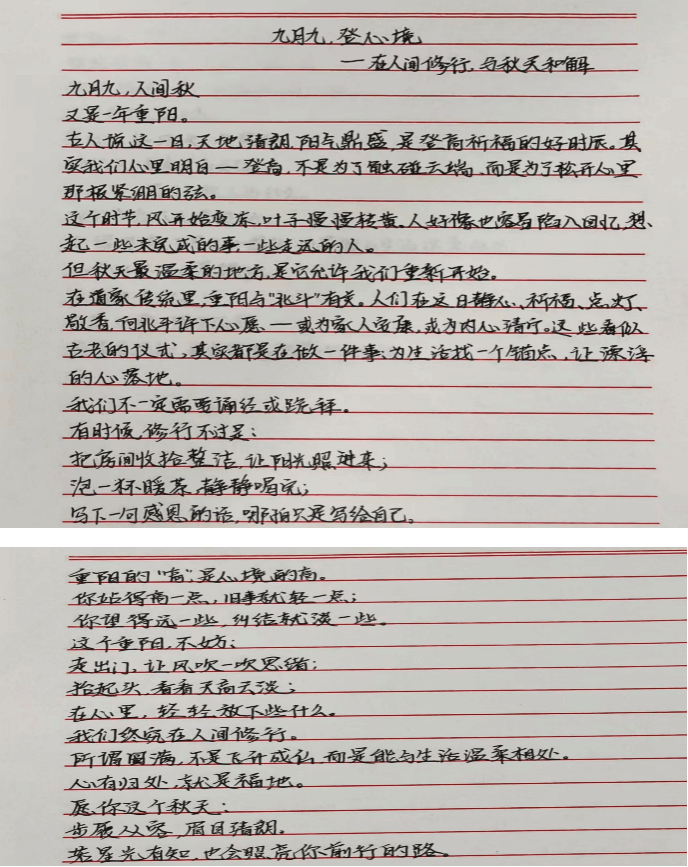 本次活动紧密结合永利3044官网的学科特色,将心理健康教育、情感表达训练与传统文化传承有机融合。学生可围绕“重阳·敬老·感恩·传承”主题,自主选择创作形式:书写现代诗文抒发对传统节日的感悟;撰写“一封家书”向长辈表达真挚情感;或结合长辈的口头禅设计专属表情包、贴纸,以轻松幽默的方式传递关爱。