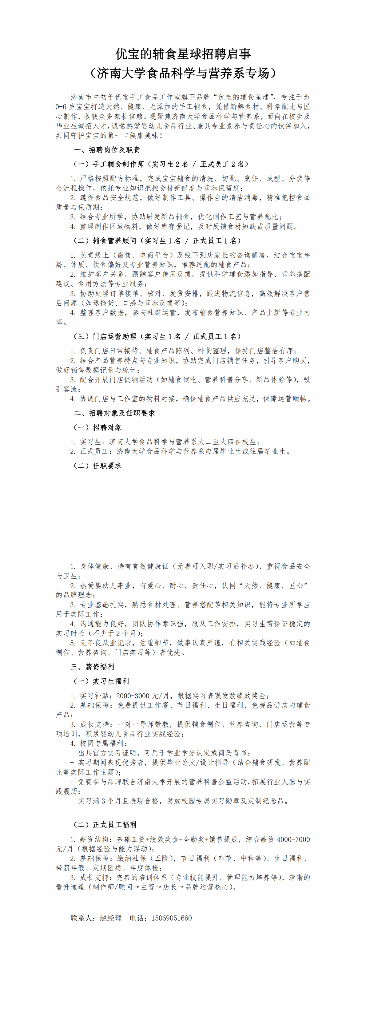 优宝的辅食星球招聘启事 (3044am永利官网食品科学与营养系专场)